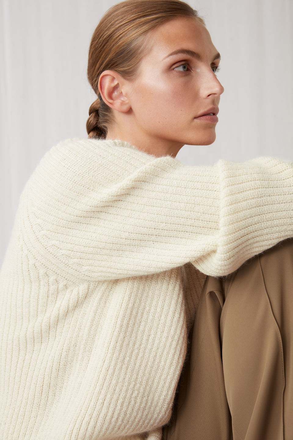 Ethically-sourced blend with alpaca wool and nylon Textured hand-feel with chunky ribbed trims Relaxed fit Underarm panelling Stepped cuff detail Read More Taking inspiration from the mohair jumper s of counterculture when punk idols wore bold jumper s in fluffy unravelling yarns this adaptation features a relaxed fit and stepped cuff. The wool comes from non-mulesed sheep and is certified according to the Responsible Wool Standard CU810300 an independent voluntary standard ensuring that wool from certified farms is properly identified and tracked through all. We think it looks especially great worn with tonal trousers or denim.