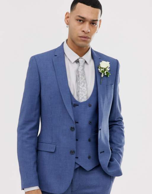 This metallic blue suit is simple and sophisticated but doesnt fail to exude a sharp look. Contemporary and stylish this Skinny Fit suit offers a flattering silhouette for the modern man.