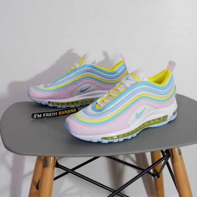 Nike Air Max 97 Corduroy Pack Light Blue Pink Desert Sand Running Shoes CQ7512-462 Item No. The Nike Corduroy pack spins the Air Max 97 using a combination of the traditional workwear textile and a playful palette. Bright branding runs down the heel tab and color-pop Swooshes are embroidered on their custom places.