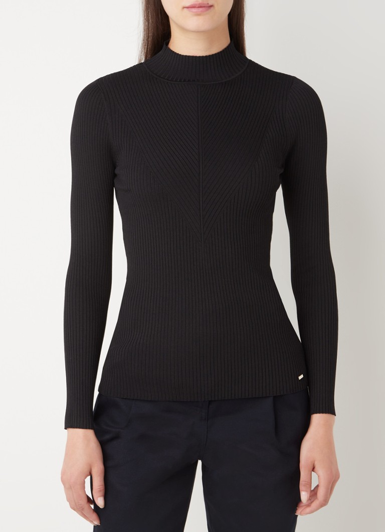 Taralyn ribgebreide trui met lage col. Saltair grofgebreide trui van merino wol met ingebreid logo. Fijngebreide trui van wol met patch.