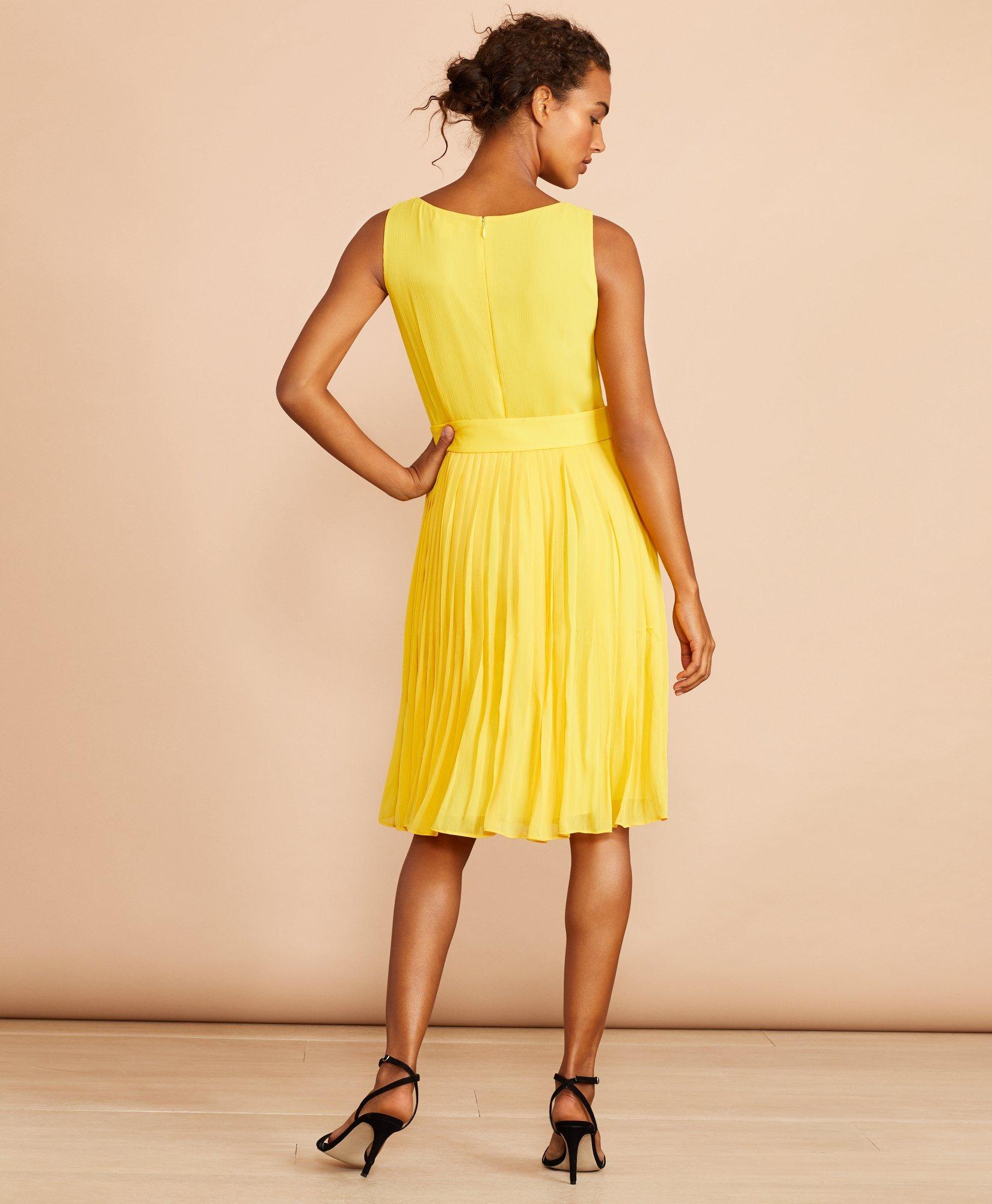 Yellow Pleated Chiffon Dress