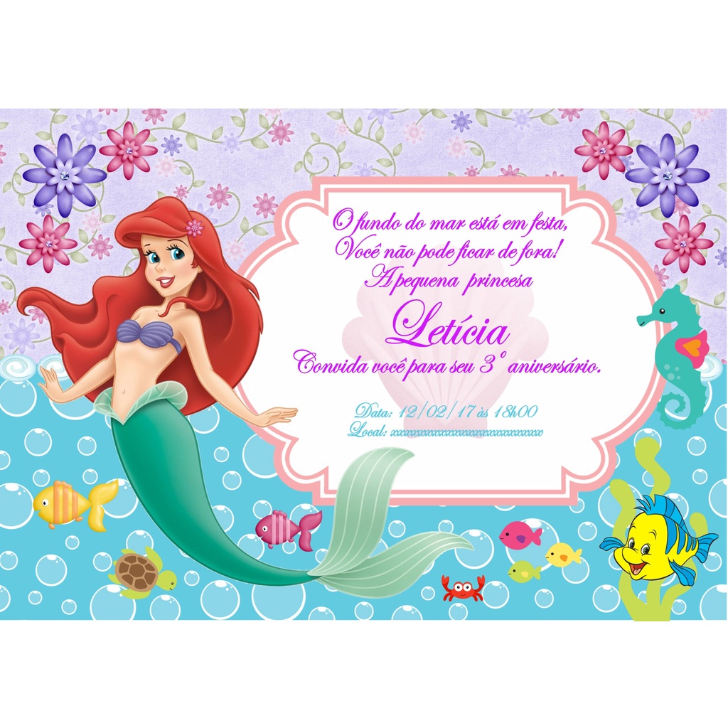 É bem simples de imprimi-los basta clicar em uma imagem que você preferir e depois espere abrir a galeria. 800 vetores fotos de arquivo e arquivos PSD. Convite - Pequena Sereia Ateliê Nuvem de Papel R 1290 Convite sereia. Ache e baixe recursos grátis para Convite Sereia. Escolha um que combine com seu evento. O convite deve ser bonito bem escrito e convidativo. Convite ariel em branco conviteariel festaariel princesaariel ariel aniversariodaariel.